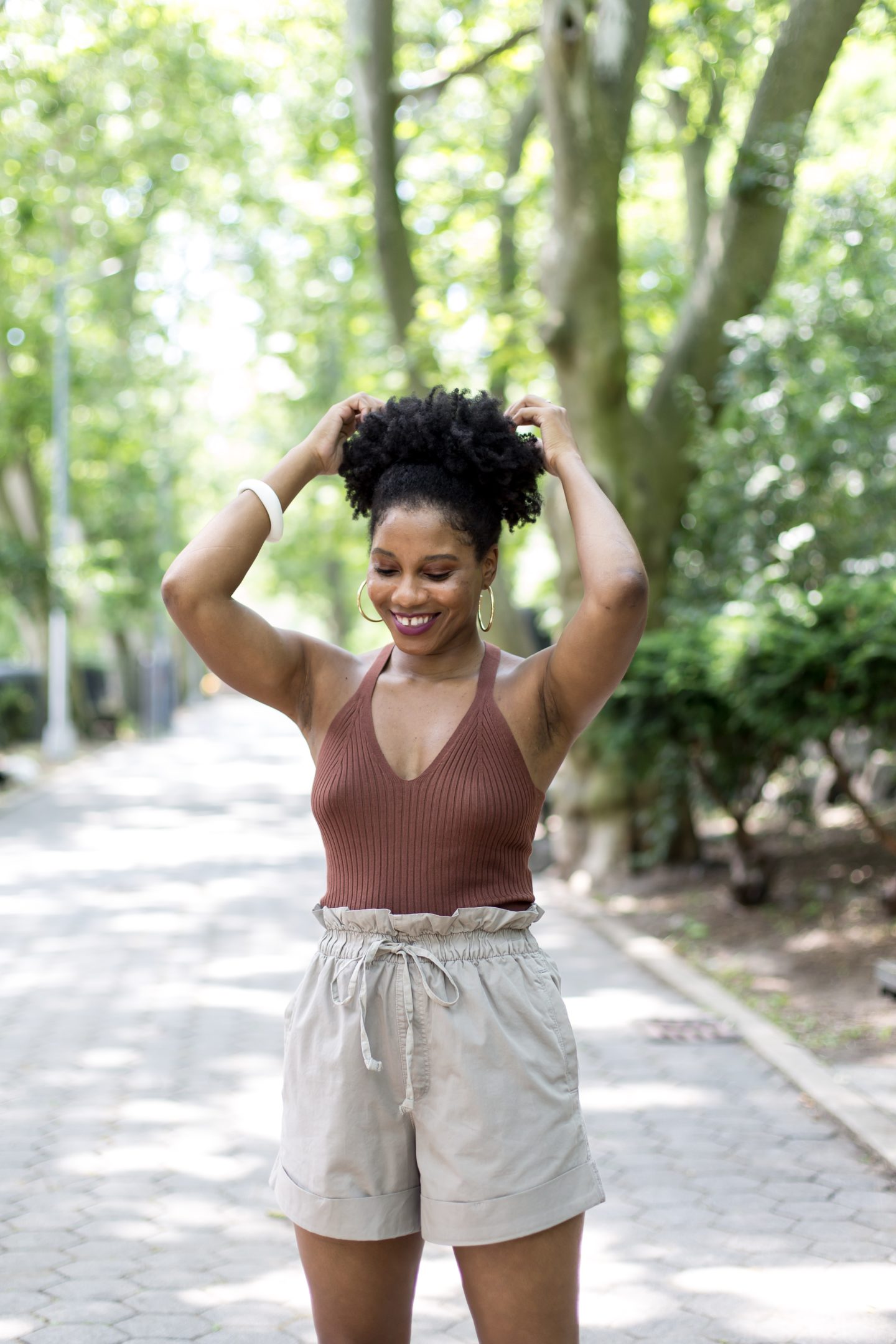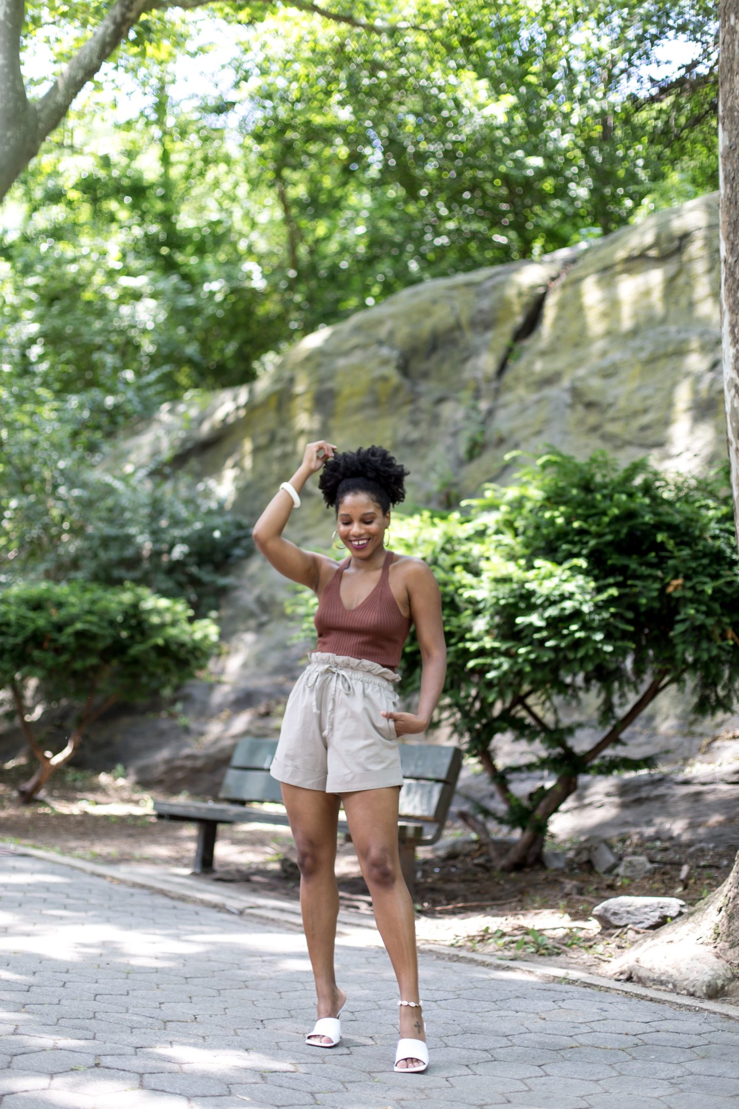 I’m planning on spending the summer in New York City on mini daycations to my favorite parks and outdoor spaces. I’ve partnered with Abercrombie & Fitch to show you some of their best summer pieces and share some of my favorite NYC Daycation destinations. I have a lot of color in my wardrobe especially when it comes to my shoes and accessories so having summer staples like shorts and woven tops in neutral color palettes are a must. I’m not really a shorts kinda girl but Abercrombie has me changing my tune. I only wear high waisted shorts and these paperbag waist shorts are comfortable and trendy. I also live for a cozy knit summer top and Abercrombie has tons of them. I have plans to visit the Brooklyn Waterfront park for a peaceful picnic and Central Park for a nice lake boat ride and you’ll probably catch me in one of these outfits. If you live in New York City and are looking for some great outdoor spaces perfect for social distancing to spend a relaxing daycation reading, picnicking or just enjoying the view here are some of my favorites.