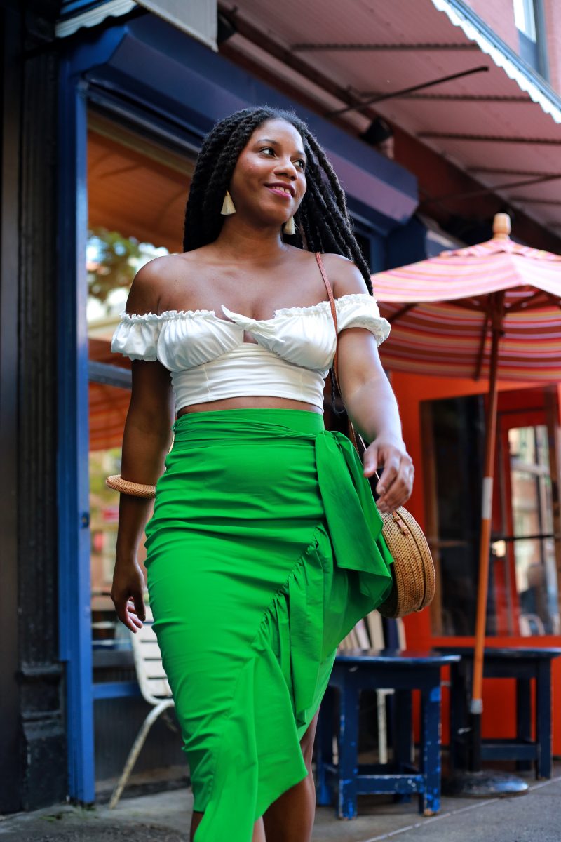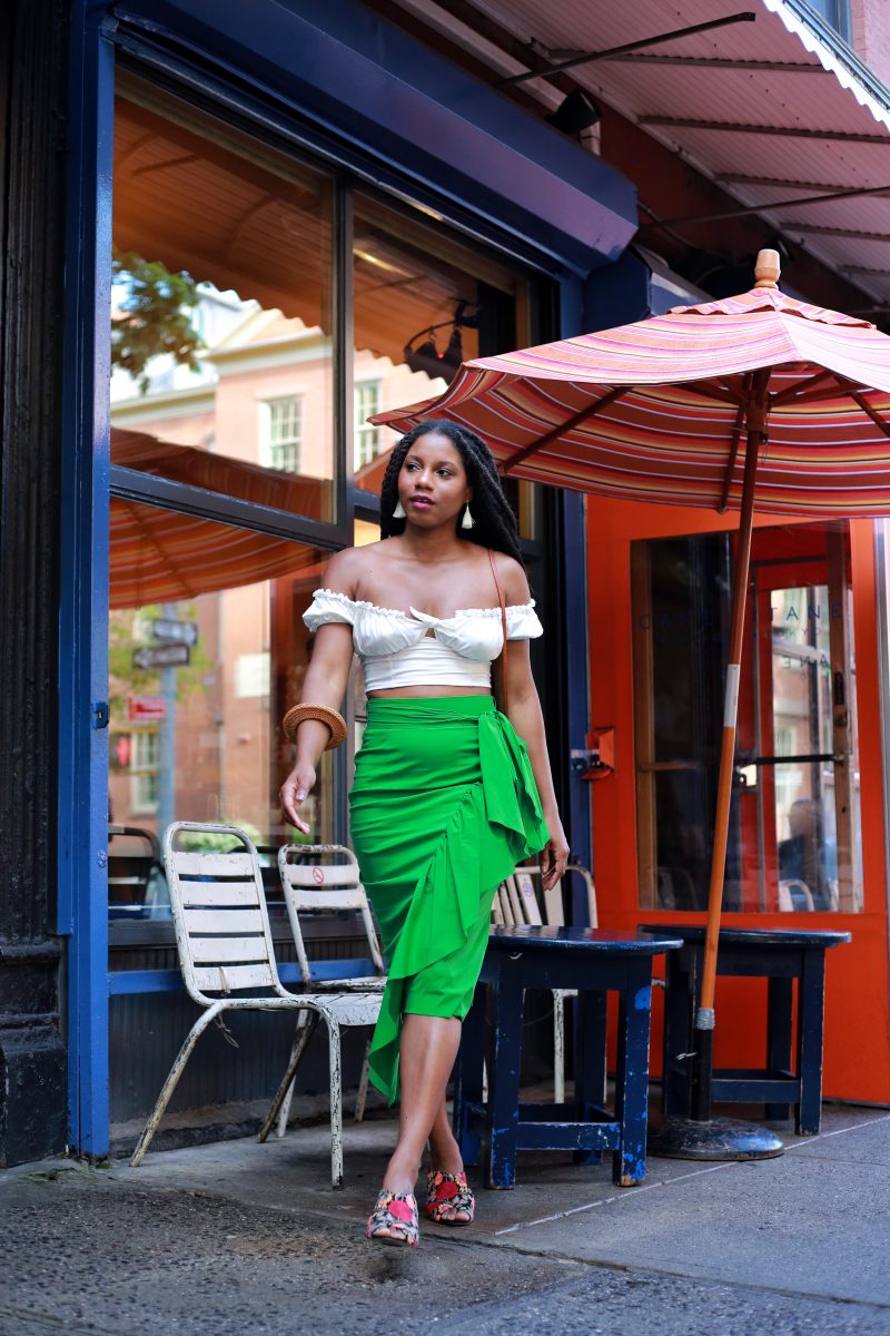 Fashion Nova Top | Milly Skirt | Sole Society Luella Mules | Borneo Line Bag Get Similar Here | Stila Aria Lipstain | The Salt Empire Earrings