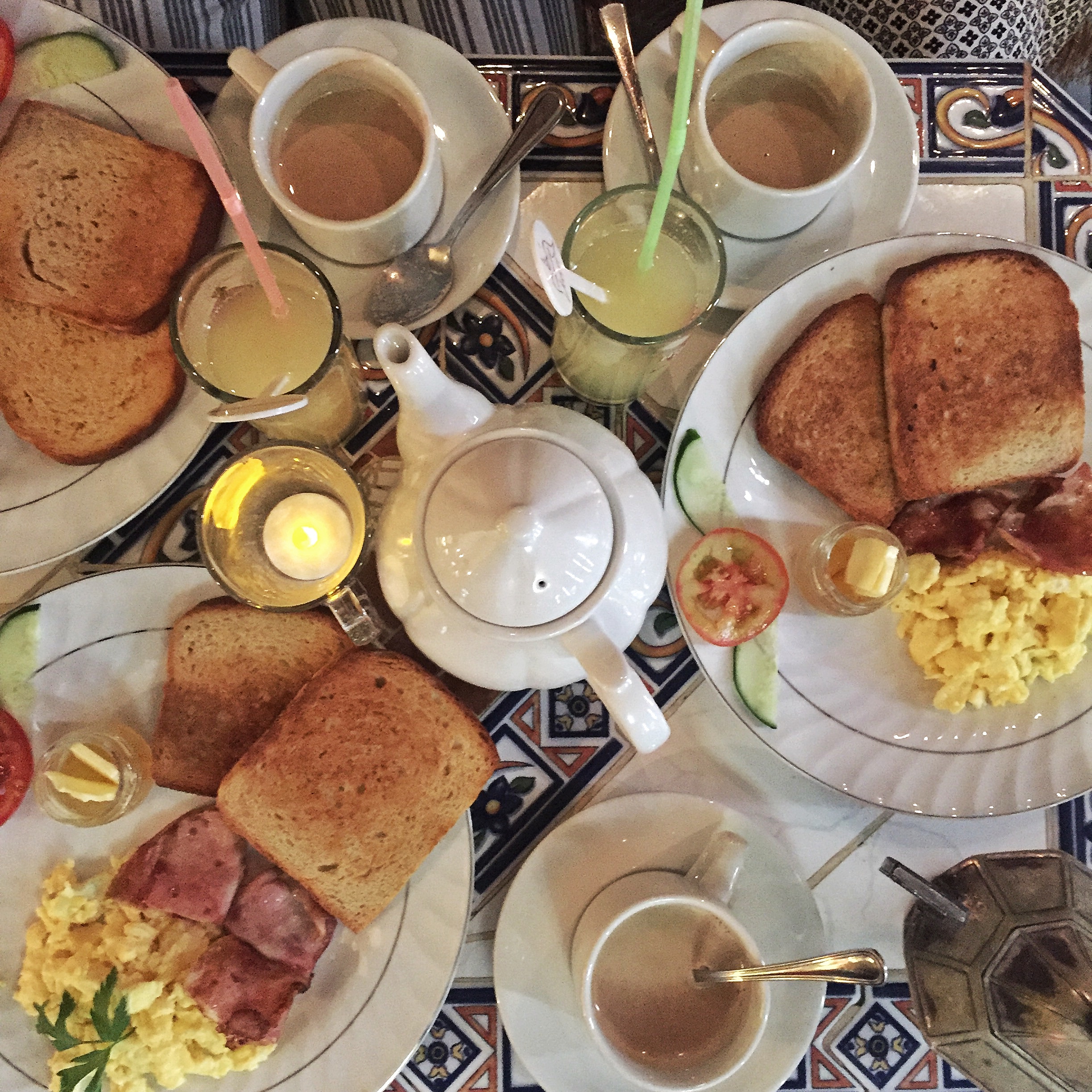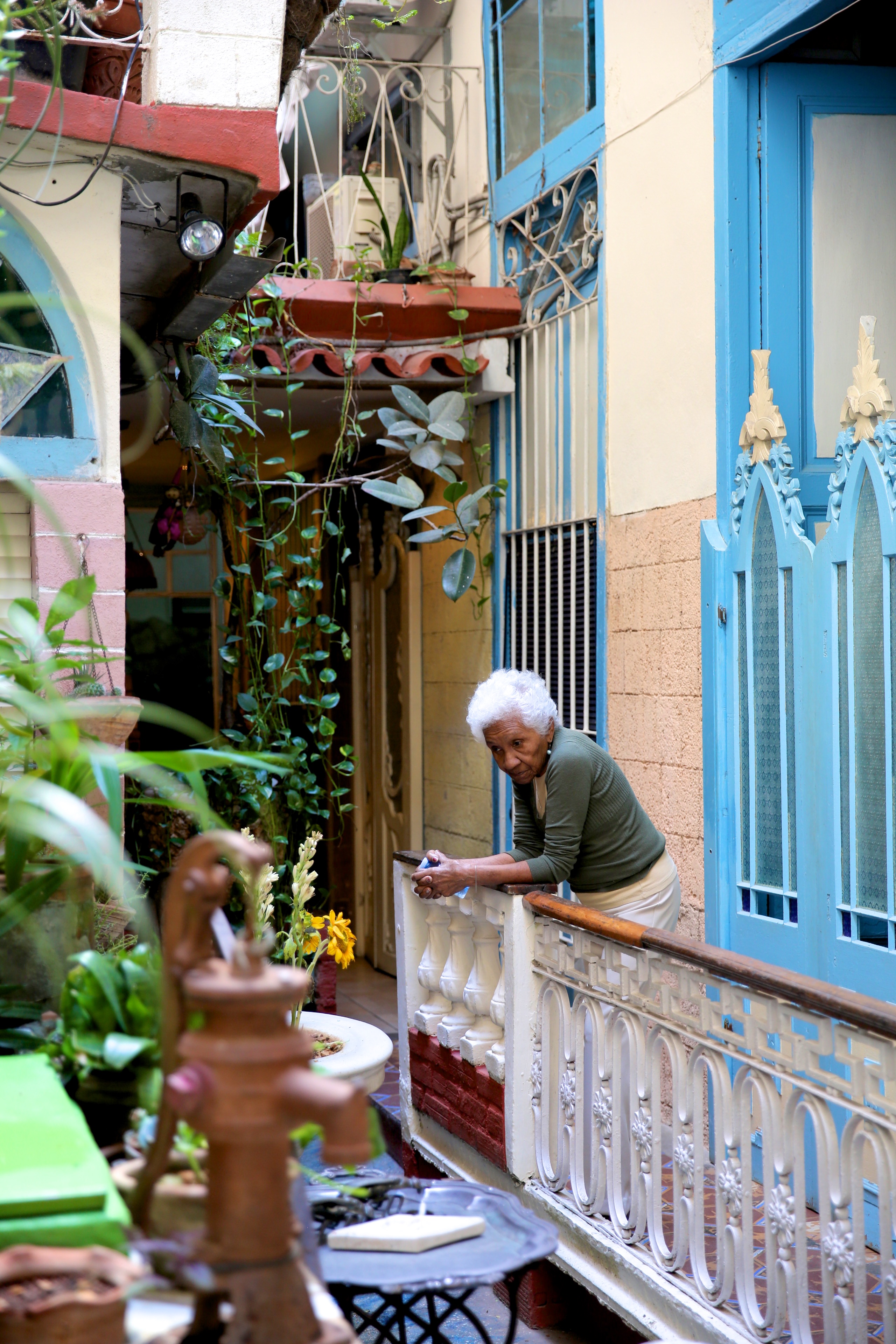 In the elevator of our building on Day 1, we met a Canadian gentleman who insisted we go around the corner to Cafe Arcangel for breakfast. It was some of the best advice we received during our stay. Cafe Arcangel’s entrance is so tiny you could pass by it if you aren’t on the lookout for it. It’s a lovely place with old photos of the owners on the wall. A couple in their 60s who are still eager to greet their customers and show us around the cafe, which is essentially set in the lower level of their home. We ordered the D’Arcangel breakfast of coffee with milk, fresh pineapple juice, scrambled eggs, ham, toast with butter and jam and a fruit salad for 5 CUCs. It was kind of astonishing that we got so much food for so little. It was delicious and we made it our business to go there for breakfast every day after. Don’t mind their cat, he is very friendly and if you’re seated in the back you will have the opportunity to see the families grandmother, who is often seen out back next to the kitchen, surveying all from a balcony.