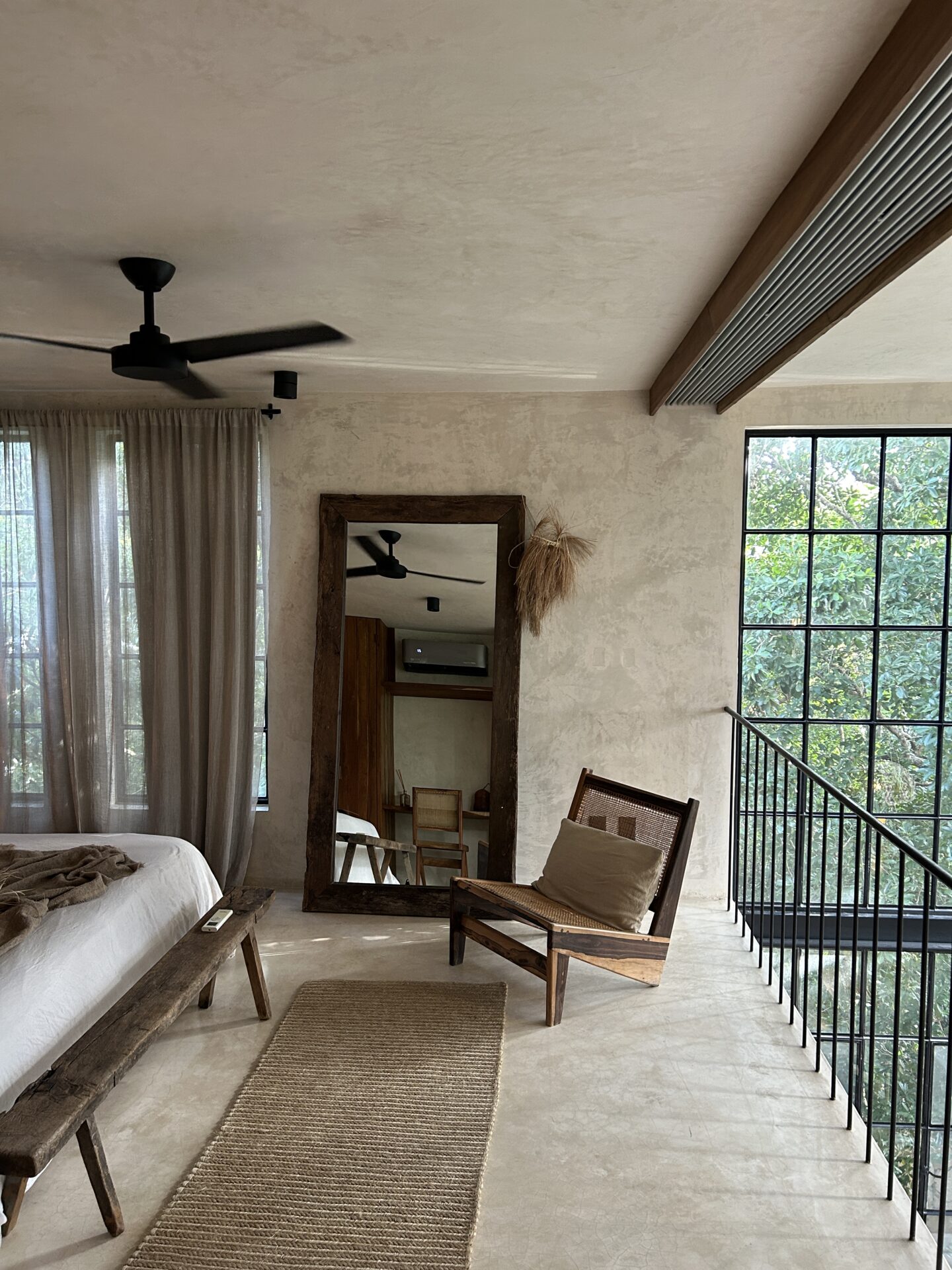 Terreo Studio owns both Altar Tulum and Liana Tulum Airbnbs. They also own several other breathtaking Airbnbs in the area for rent. The service is amazing and the attention to detail is impeccable. I absolutely love the design of their properties as well. I definitely prefer Altar Tulum over Liana Tulum because it’s a little more spacious and southern facing for stunning light all day. But my recent stay at Liana Tulum was very relaxing. I felt as though I was up in a beautiful tree house with the birds chirping every morning. I really enjoyed the clean peaceful vibes and lighting a copal incense and hanging out on the rooftop terrace with a foot in the pool and a glass of white wine provided by the team.