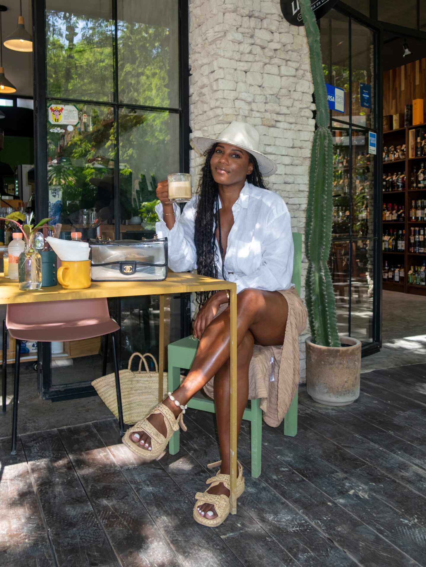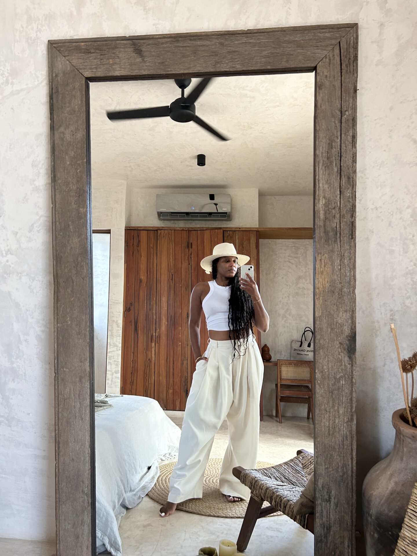 Tulum’s weather is very similar to Miami. In fact, the flight is a little over an hour away to Cancun! The humidity is a lot higher though especially in the jungle. It’s cooler in the mornings and blazing hot by mid afternoon. So I suggest packing plenty of hats and sunglasses. I took my current hat favorites from Corazon and Shop Nikki Beach. I packed a few short flowing dresses that don’t cling to my body, sturdy sandals because there are a lot of dirt roads in Tulum and light makeup in the form of tinted SPF. Trust me you cannot wear a full face in Tulum because it will not last, no matter what kind of primer you have. For my travel look, I went with a pair of trousers and a light blazer being that most planes are cold and I don’t like being cold. I’ve made sure to link all of my Tulum outfits including bags on my shop.LTK account. You can follow me here to shop everything I post on YouTube and Instagram.