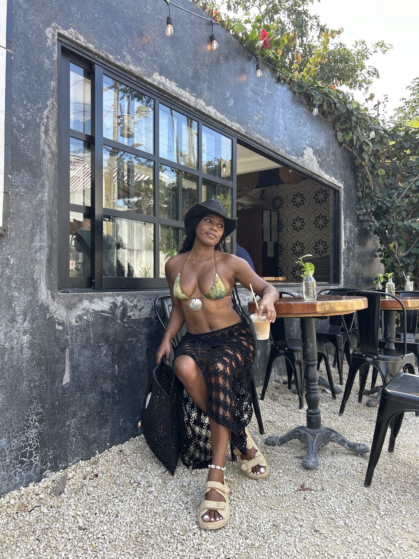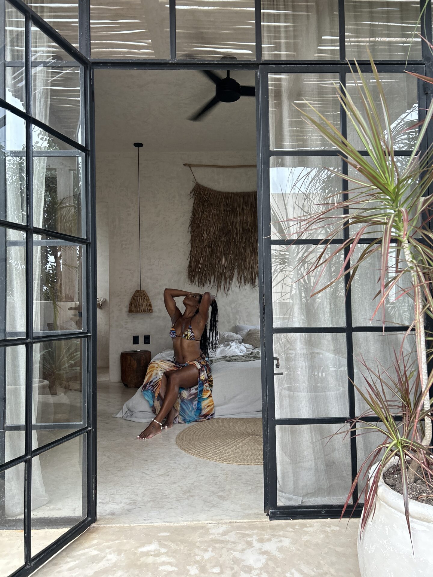 This time last year, I decided to take a solo trip to Tulum to refresh and renew my way into the new year. I booked a trip to Tulum, Mexico and a stay at Altar Tulum and at the last minute my ex whom I’d recently reconnected with, decided to come. Y’all we broke up again on the plane ride home but I really enjoyed my stay and the reflection I achieved in the jungles and beaches of Tulum. I vowed, if I could, I’d visit Tulum every January to ease my way into every New Year. Tulum has become super popular over the years but I’ve been going since before it had main roads. My first trip out of the country was to Playa Del Carmen Mexico, a few miles away. I loved the rustic feel of that small town, with one road of shops and restaurants. When I heard of Tulum, I went the first chance I could and it’s been one of those places I always visit and never tire of. I think it’s nature and the peacefulness that I crave. I feel very centered in the jungle amongst lush vegetation and my most serene self on the beach, walking the sands of the ocean. I think it’s one of the reason’s why I moved to Miami from New York City. I was seeking peace and the vitamin D from the sun didn’t hurt either. To ease into 2025, I decided to book a stay at a sister Airbnb, Liana Tulum in the little town of La Veleta.