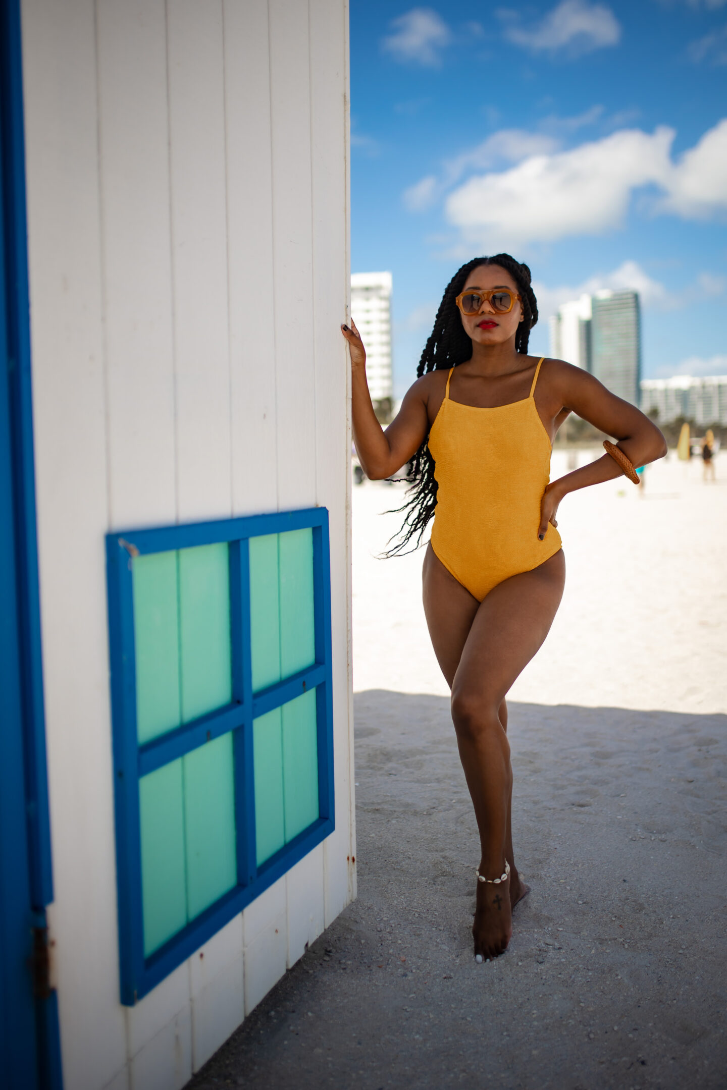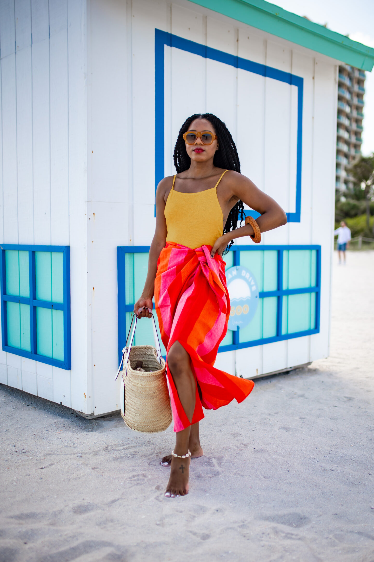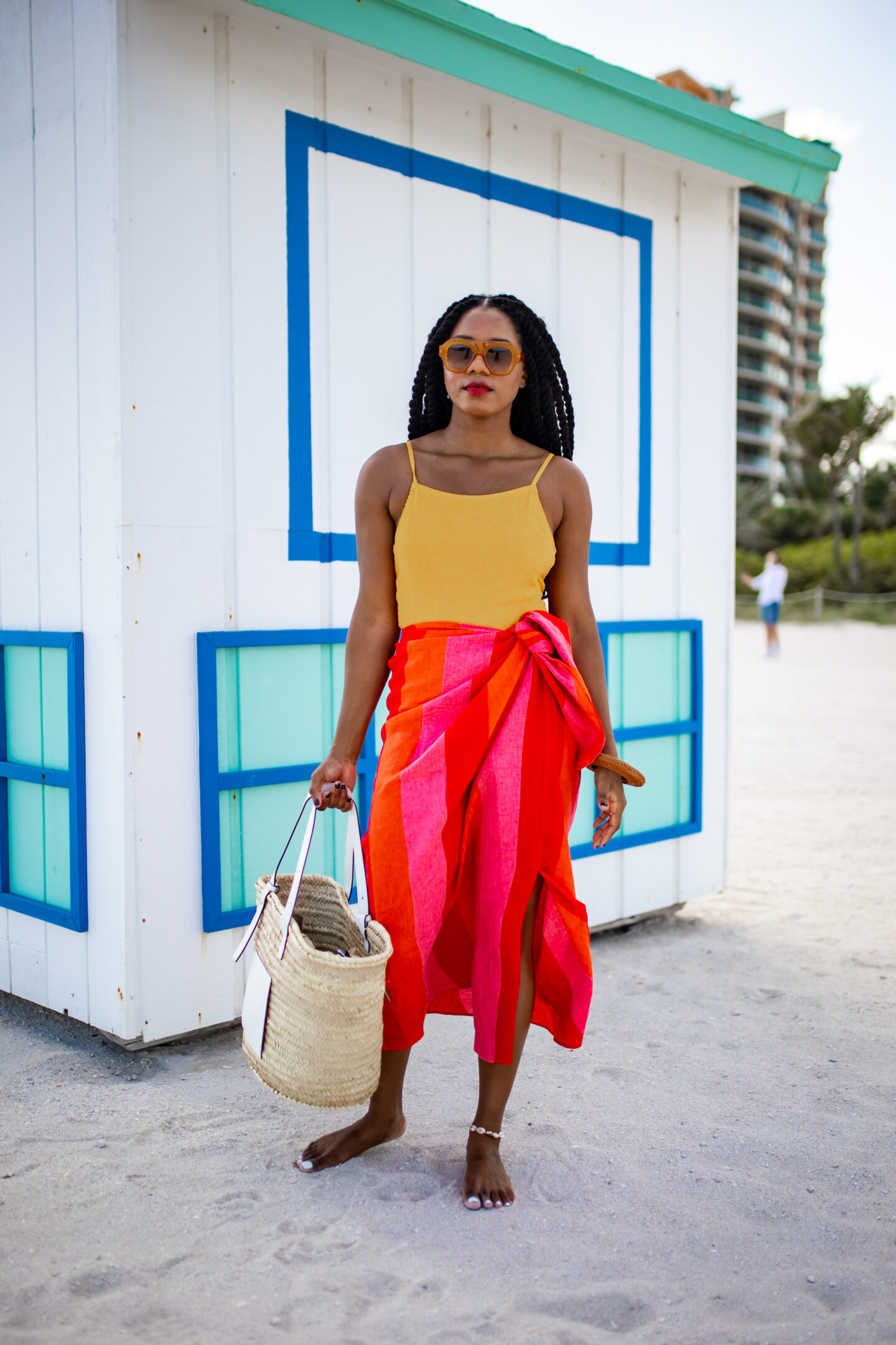 Mara Hoffman Wrap Skirt/Dress SOLD OUT| Yellow Crinkle Swimsuit | Lapima Sunglasses | Loewe Bag